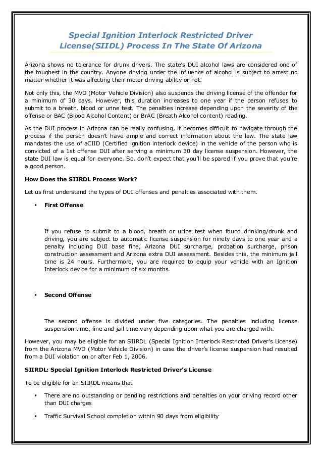 What is Code 107 on a driving Licence?Drivers can immediately apply for an IID-restricted license after a DUI is installed and proof is submitted to the DMV. There is no mandatory waiting/suspension period before a driver can get an IID installed. The IID period is based on the DUI charge, as follows: 1st DUI: 6-month IID.